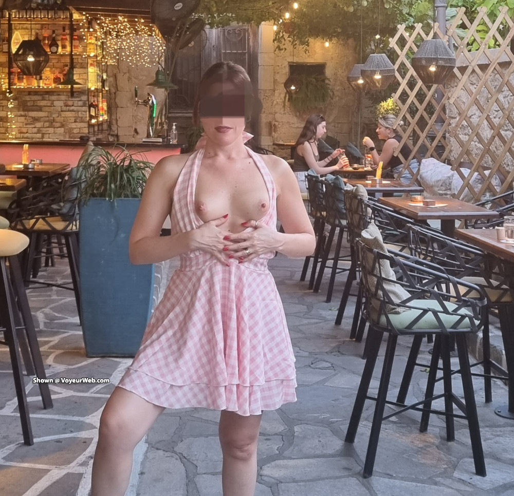 Amateur Brunette Flashing Flashing Tits Hard Nipples Natural Tits Outdoors Pussy Shaved Small Tits